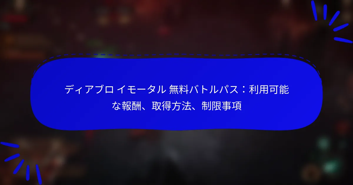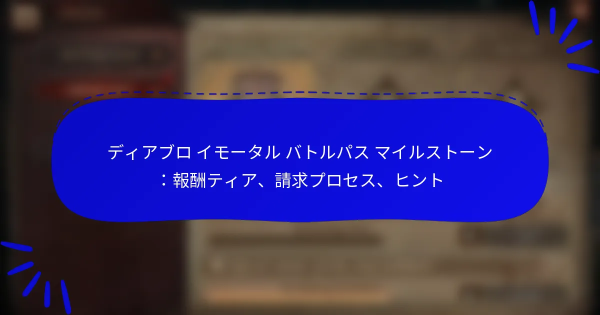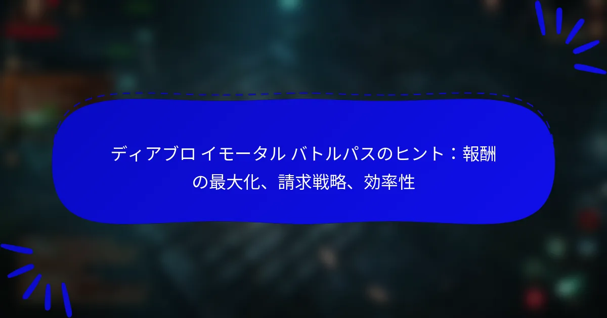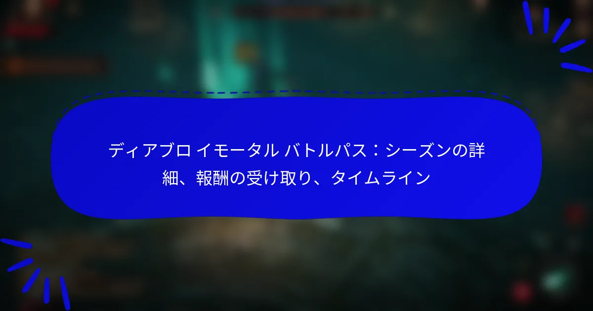 ディアブロ イモータル バトルパスは、プレイヤーがゲーム内のアクティビティを完了することで報酬を得られる季節ごとの進行システムです。日々のチャレンジや週ごとのチャレンジに焦点を当てることで、プレイヤーは経験値を獲得し、バトルパスをレベルアップさせ、独占的な報酬をアンロックしてゲームプレイ体験を向上させることができます。無料とプレミアムの報酬が用意されており、プレミアムオプションはプレイヤーがレベルを進めるにつれてより大きな利益を提供します。 Key sections in the article: Toggle ディアブロ イモータル バトルパスとは何か、どのように機能するのか? バトルパスの定義と目的 経験値の獲得方法 バトルパスのレベルとティア 無料バトルパスとプレミアムバトルパスの違い 季節ごとの変動とアップデート ディアブロ イモータルでバトルパスをレベルアップするにはどうすればよいですか? 経験値を得られるアクティビティ 日々のチャレンジと週ごとのチャレンジ イベント参加と進行への影響 […]