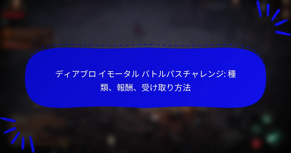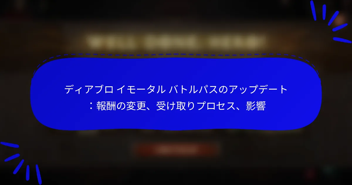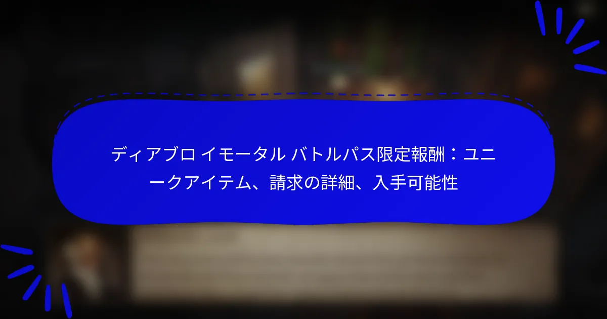 ディアブロ イモータル バトルパスは、プレイヤーのエンゲージメントを高めるために、ゲームプレイを通じて構造化された報酬を提供するように設計された季節的な機能です。多くのユーザーが独占的なコンテンツやインセンティブを評価する一方で、フィードバックには賛否が分かれ、報酬を称賛する声もあれば、価格やグラインドに対する批判もあります。報酬を請求するには、バトルパスを購入し、特定の手順に従う必要があり、プレイヤーは投資の利益を享受できます。 Key sections in the article: Toggle ディアブロ イモータル バトルパスとは? バトルパスの定義と目的 ティアと報酬の概要 独占的なコンテンツと機能 価格構造と支払いオプション 期間と季節の変化 ユーザーはディアブロ イモータル バトルパスについてどう思っているか? ユーザーフィードバックと証言の要約 プレイヤーによって共有されたポジティブな体験 […]